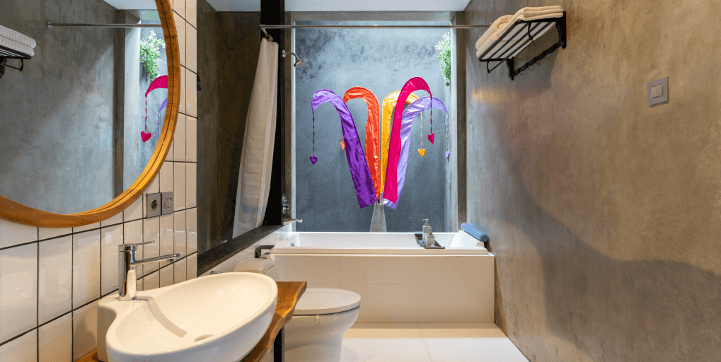 Traditional music instruments in the bedroom – Angklung curated like a musical scale adding the virtuoso feeling for guests opting to stay in this tastefully designed villa. The en-suite bedroom is also equipped with a working desk suitable for quick work.